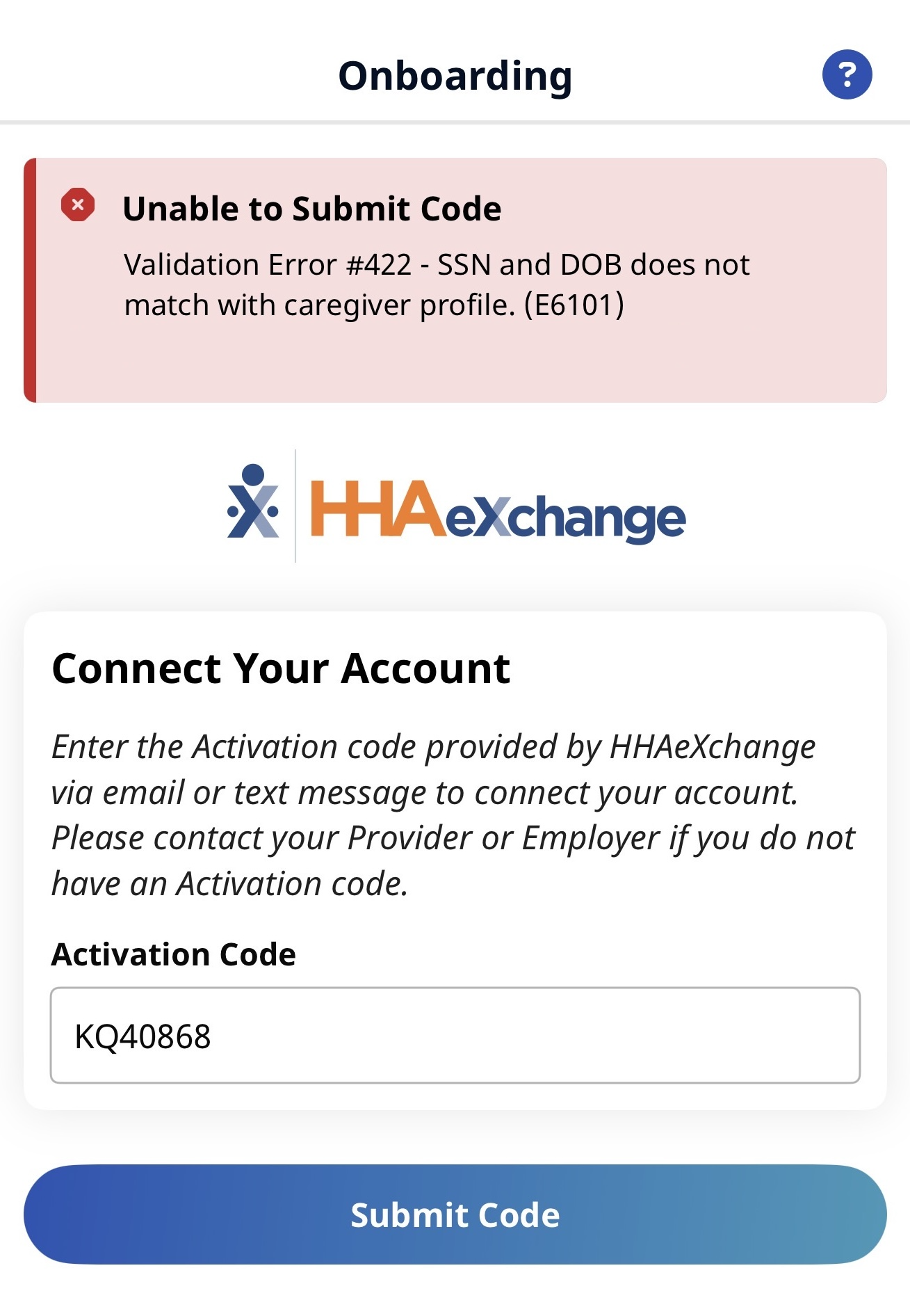 HHAeXchange+ Mobile App Missing Activation Code