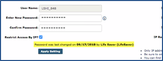Access restrictions are also set up in this page; either by individual IP addresses or a range can be defined by the Provider. These settings are managed on this page and can be changed at any time. Click the Apply Setting button to save. A validation message alerts of a successful save.