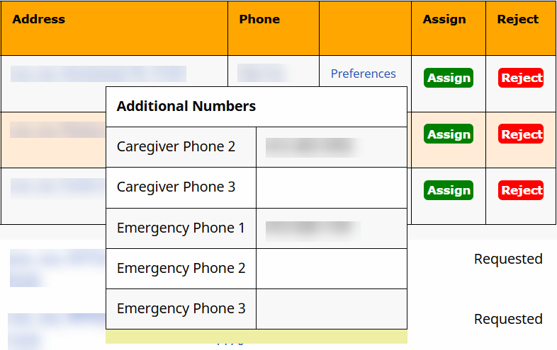 Caregiver’s Home Phone. Click the link to show additional phone numbers for the Caregiver to include Emergency Contact. |