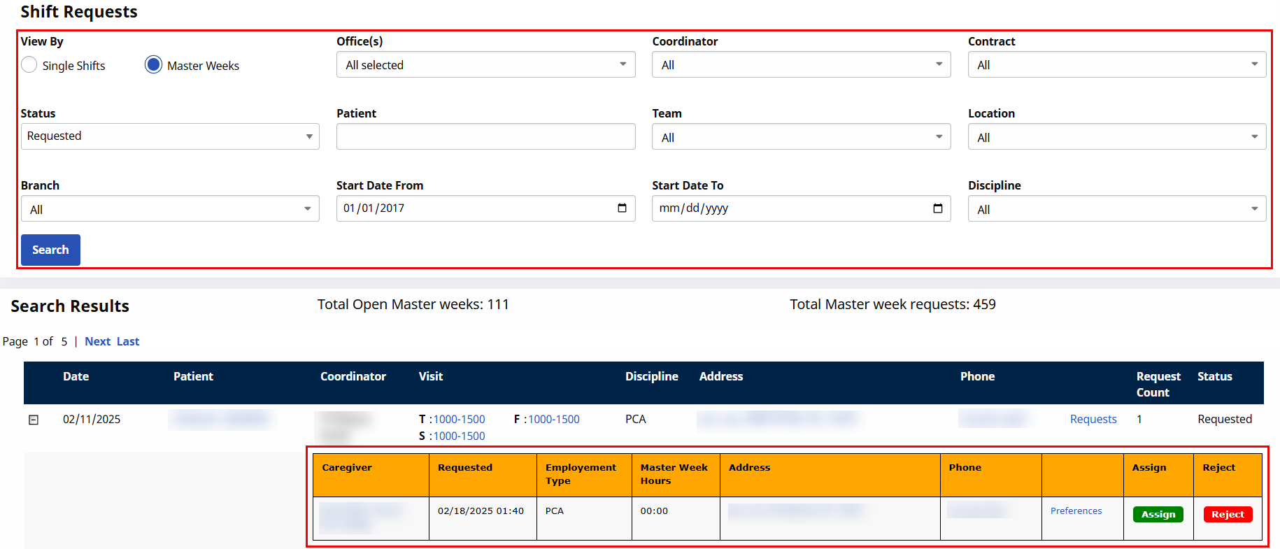 Once a Master Week has ended, a rejection message is automatically issued to all Caregivers who have requested the Master Week, with the default Rejection Reason such as Shift no longer available.