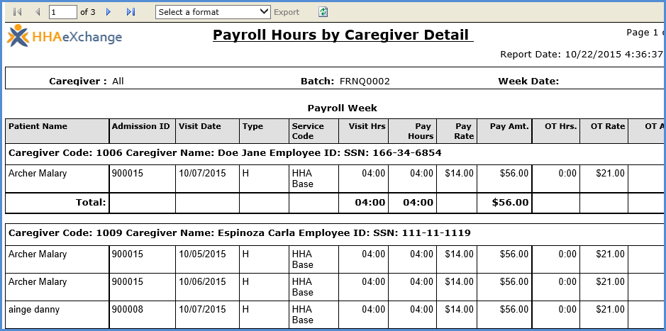 The Payroll Report menu contains various reports that divide payroll information for easier review. The reports in this menu are added during the initial implementation.