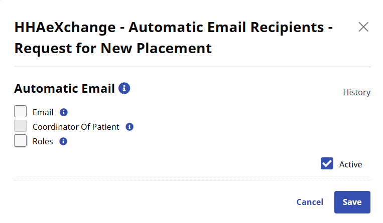 Select the Active checkbox to generate an automated message for all entered recipients when the appropriate condition is met. To stop the automated message for all recipients, unselect the Active checkbox.