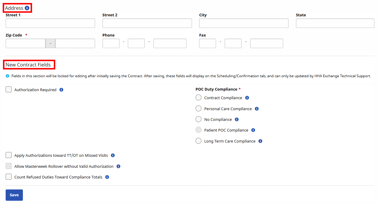 Select if the Contract is a Visiting Nurse Service (VNS) Health Contract. VNS Health Contracts require additional configuration steps. Contact the HHAeXchange Support Team for details and setup. |