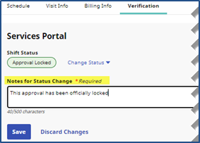Enter a supporting note in the Notes for Status Change (required) field. Click Save.