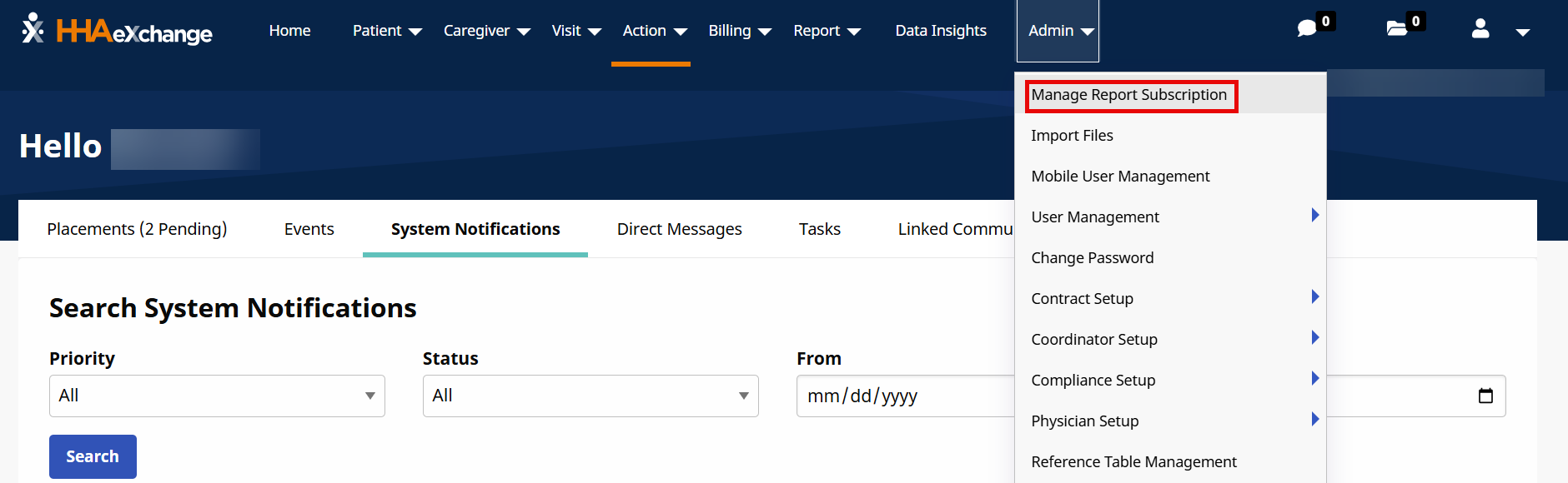 Create or update report subscriptions from the Admin menu.