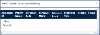 A Visit Exception History link is available to view a history of visits that have been acted upon or archived.