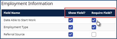 Repeat the steps above to select fields in the Employment Requirements tab. Click Save to finalize.