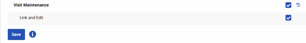 Scroll to the Visit permissions and enable applicable permissions for Visit Maintenance category.