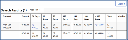 Select Aging to see results depending on how far back the invoice has been outstanding (open claims and money owed in 30-day intervals).