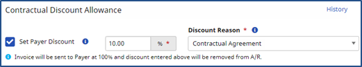 For example, a 10% Payer Discount is entered for a Contract with Contractual Agreement as a Discount Reason.