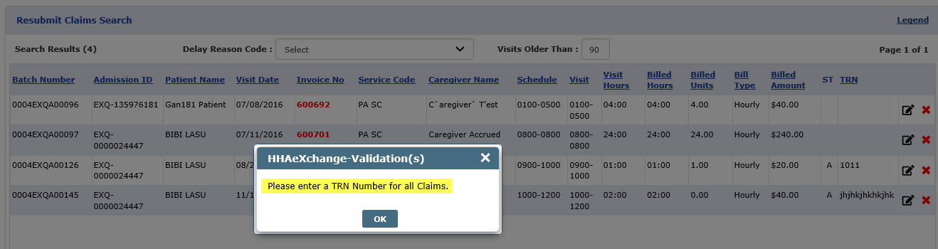 This functionality applies to Payers whose 837 are exported via the HHAeXchange system.