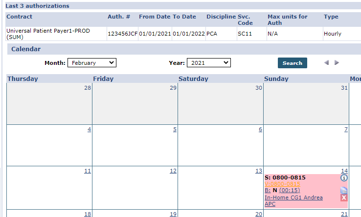Once selected, the system schedules a nightly process which runs on the selected Billing Day. In addition, it creates a Schedule with a Visit Confirmation Time appearing in the Patient and Caregiver calendars.