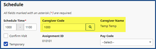 The Provider can assign a temporary (TEMP or Temp) Caregiver value to a visit as a placeholder when an available Caregiver has not yet been determined.