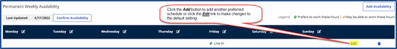 By default, a Live-In schedule is prepopulated. Either click the Add button to add an additional preferred availability schedule or click the Edit link on the existing (default) schedule.