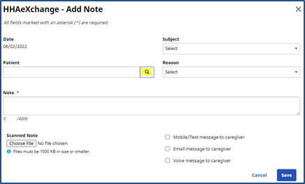 From the Caregiver > Notes page, users with the Caregiver’s Primary Office permissions can view, add, edit, and delete Notes. Users with Secondary Office rights can only view Notes. To edit visit information, click the