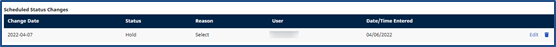 (Optional) In the Scheduled Status Changes grid, click the Add button to schedule the Status change and complete the required fields.