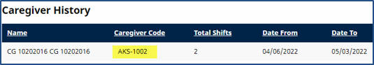 A column for Caregiver Code is available in the Caregiver History page. This column is also displayed in the Declined Caregiver section on the same page. To mark a Caregiver as declined, perform a Caregiver Search. The results generated show any Caregiver whose Offices (Primary or Secondary) match the Patient Office.