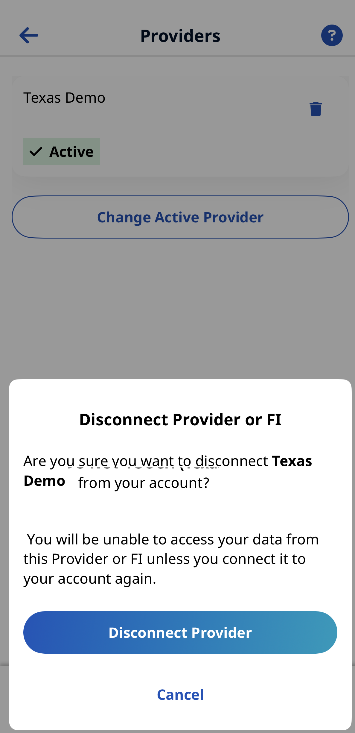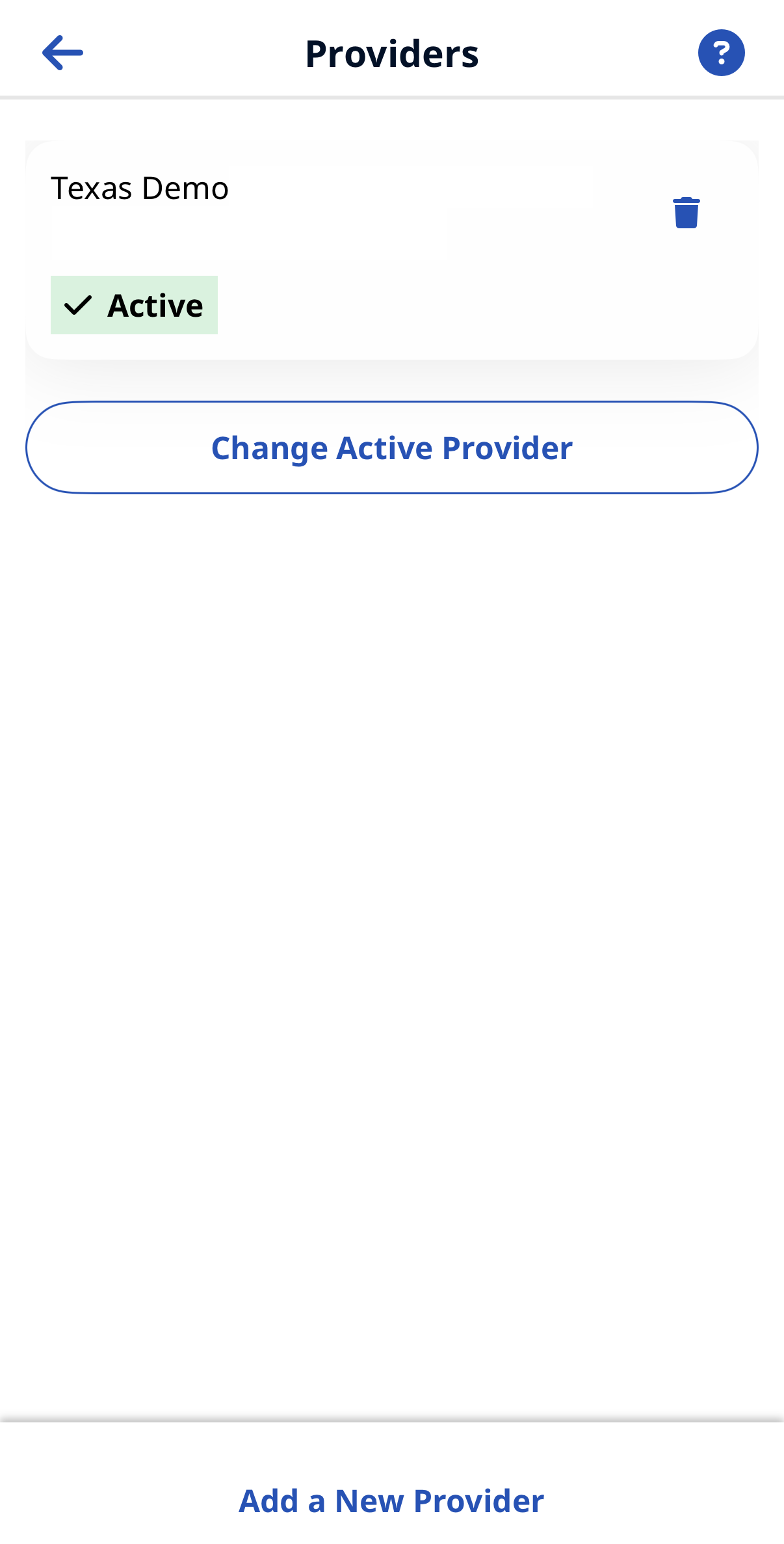 On the Providers page, select from the list of connected Providers and tap Change Active Provider to open the Select a Provider page.