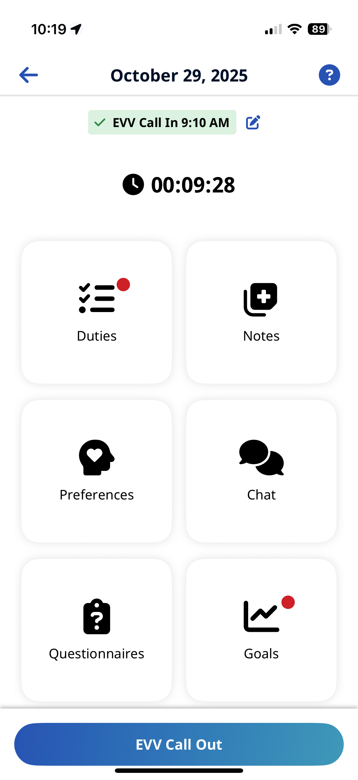 Clock in to the Visit, and then tap the Goals tile. To access Goals after the visit go to Schedule > Visit > Visit Details.