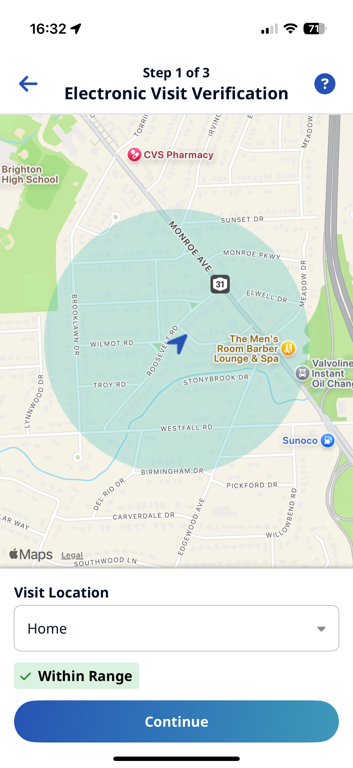 If you select GPS, you can use the map to help locate the Patient Address, and (if configured by the Agency) you can change the Service Delivery Location from the Member's Home to another value to bypass the need for proximity to the Patient Address.