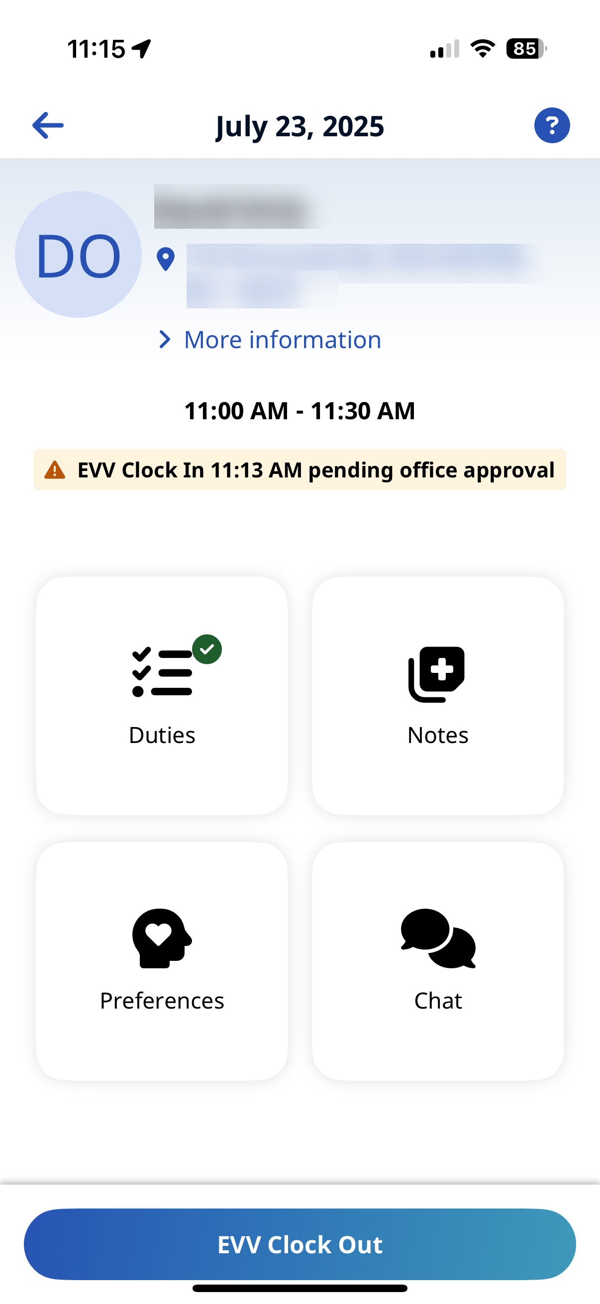 If you have Non-EVV Services to record (and the Agency is configured to allow it), tap the checkmark to select Non-EVV Services and select the Duration of Non-EVV Services in Hours and Minutes.