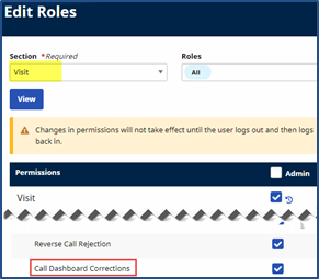 Scroll to Call Dashboard and select Call Dashboard Corrections for the respective role(s).