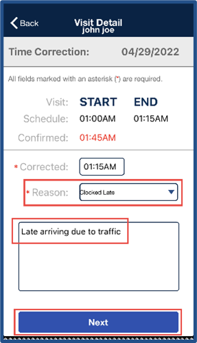 A Caregiver can request a Time Correction Edit up until the visit is billed.
