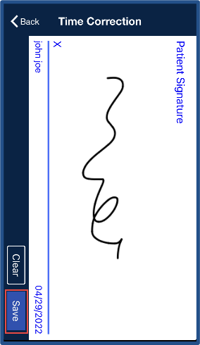 The Patient Signature page appears. Obtain the Patient Signature and tap Save.