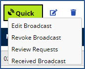 The green Quick and Matching buttons are selectable once a Broadcast has been issued providing the user with options.