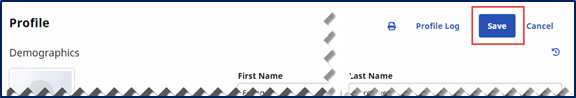 The Save button appears at the top-right of the Profile after clicking the Edit button.