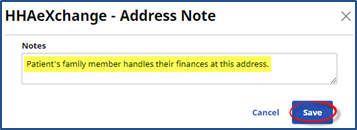 To add Notes to a specific address, click the Add link in the Notes column for a specific address. Enter a note in the Notes field and click the Save button.