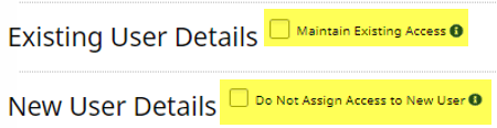 Select the Maintain Existing Access checkbox to disable the Access To field and the End Existing User’s Access checkbox, providing access to new users while retaining the existing user’s access intact.