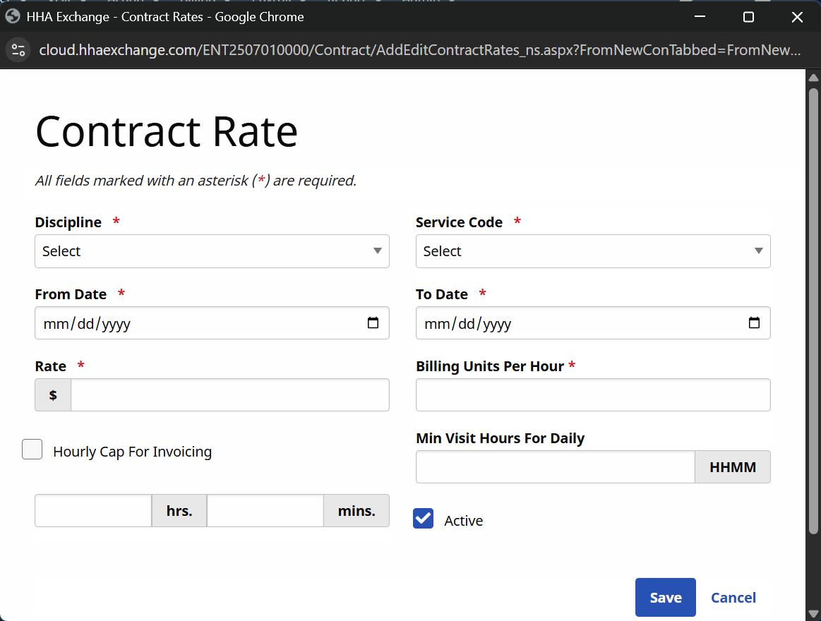 Complete all required fields. Ensure to select the correct Service Code. Click Save.