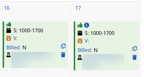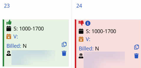 Visits scheduled with a Service Code that is not covered by the Authorization, or setup to bypass Prebilling validations also display in white, even if within the 14-day block. Consult with an Administrator to discuss which Service Codes the Agency has authorized to skip Prebilling validations.