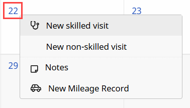 Click the date number link at the top-left of the Calendar cell and select New non-skilled visit from the options.