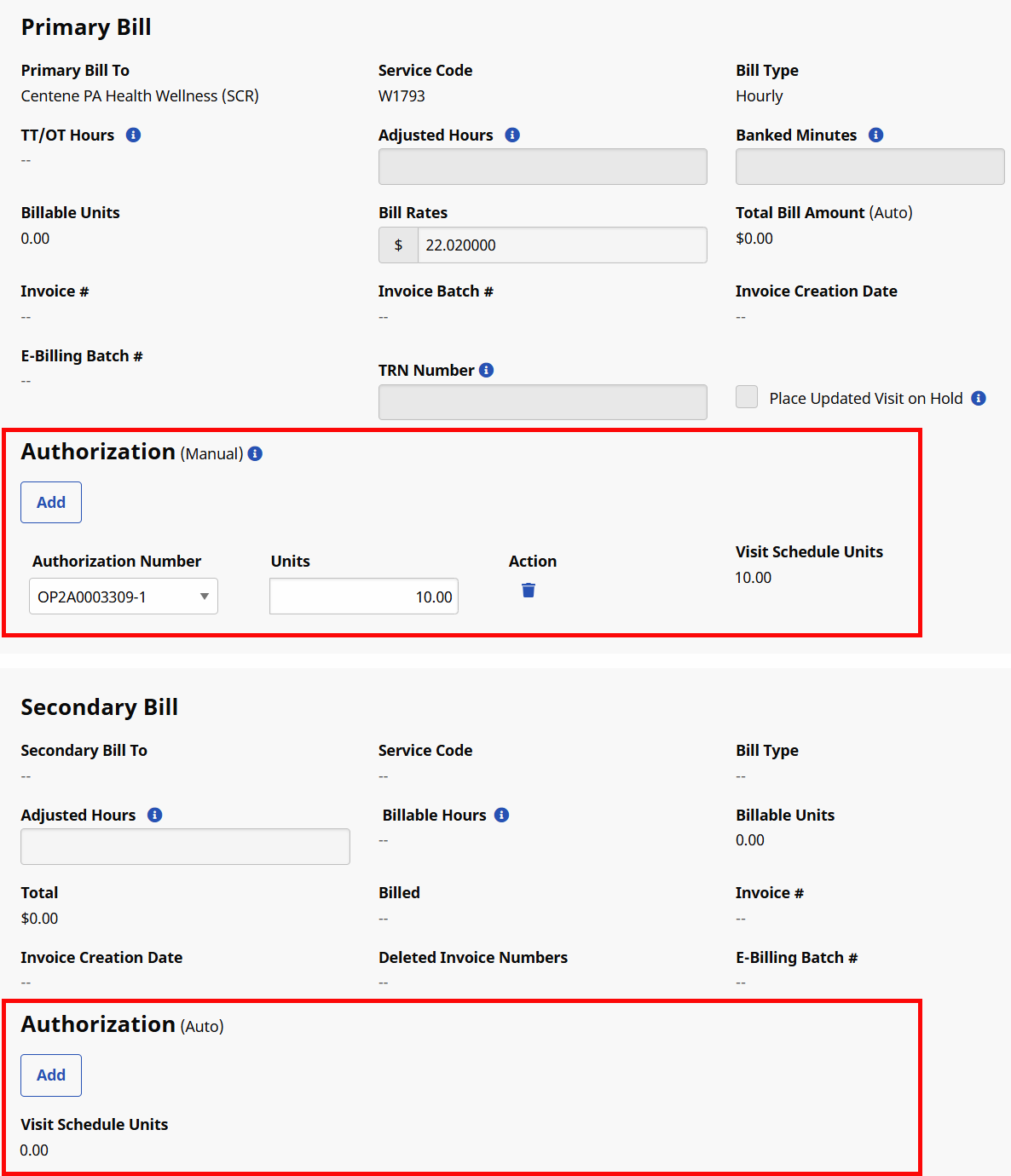The Authorization functionality is available for both Primary and Secondary Contracts, allowing Agencies to split Authorization hours between the two: