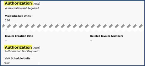 The Authorization section of the Bill Info tab has several statuses depending on how the Authorization is applied to the visit, as well the Contract’s scheduling requirements, as follows: