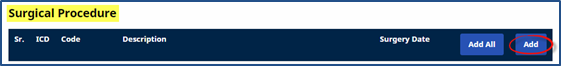 Click the Add button to add a surgical procedure for a Patient.