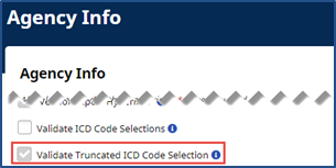 Providers have the option to stop users from adding Flag 10 ICD Codes anywhere ICD Codes can be entered. To enable, go to Admin >Agency Profile and select the Validate Truncated ICD Code Selection checkbox.