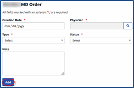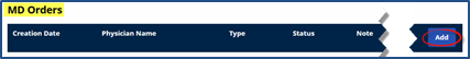 Click the Add button to add an MD Order for a Patient.