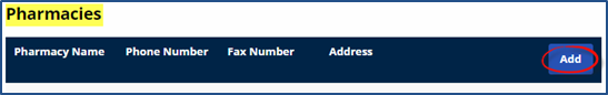 Click the Add button to add a pharmacy for a Patient.