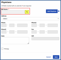 Indicates the Physician(s) in charge of the Patient’s case. If the Patient’s Physician has not yet been added in the system, users can enter a record directly from this page. |