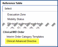 Select Clinical Advanced Directive from the Reference Table dropdown and click the View button.