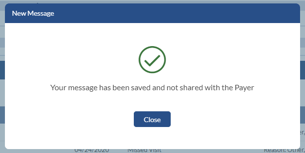 For this example, an Internal note was created. The confirmation alerts that this Note is not shared with the Payer.