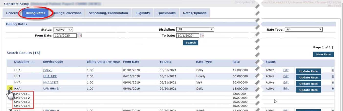 In the Contract Setup Billing Rates tab, any Discipline denoted with a +/- indicates multiple rates.