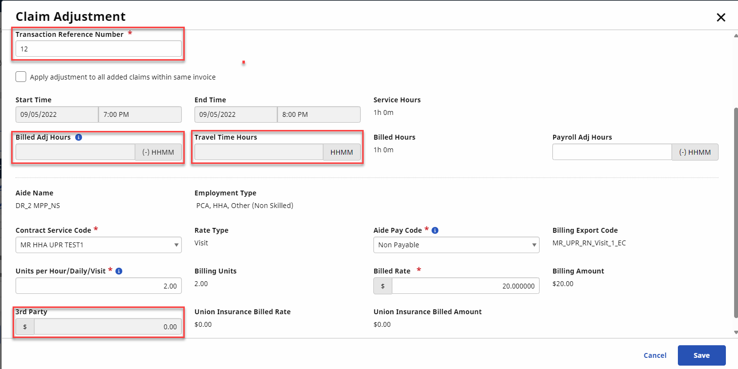 For UPR Linked Contract claims, several fields have been disabled on the Claim Adjustment window such as Billed Adjusted Hours, TT Hours, and 3rd Party.