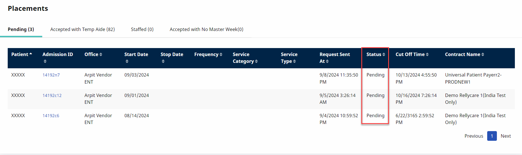 Review the Pending Placement and accept. Once accepted, a new Patient record is created with access to both Internal and UPR Linked Contracts.