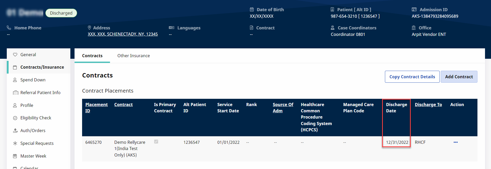 Because the placement now behaves similarly to an Internal Contract Patient record, Providers can edit fields and add multiple addresses, without affecting the Payer record. The same editing ability applies for phone numbers, emergency contacts, emergency preparedness, etc.