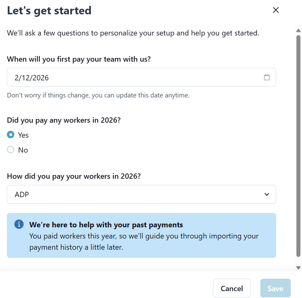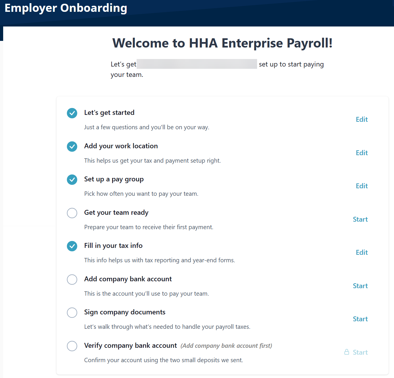 The Employer Onboarding feature under Payroll > Employer > Employer Onboarding allows you to set up Payroll for your agency. Set this up once and done.