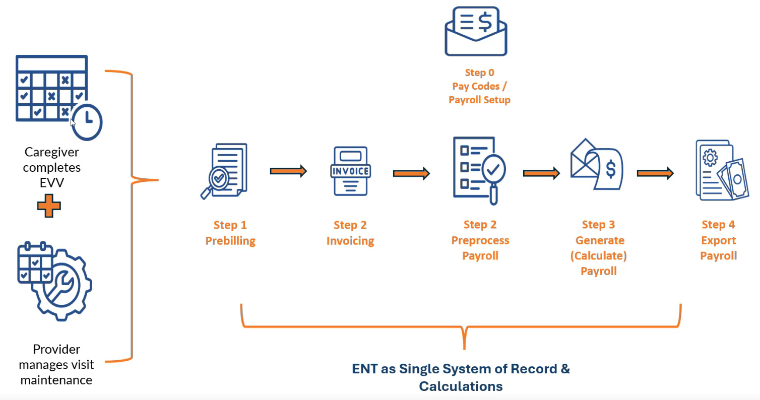 Pulls EVV time data directly from HHAeXchange into the Payroll feature.